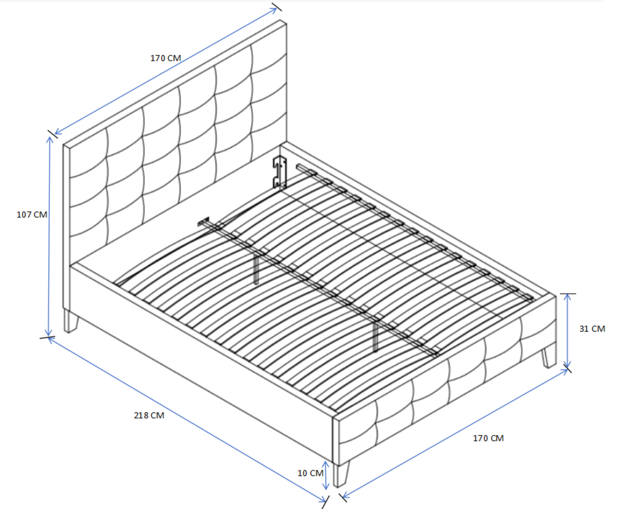 - Sommier à lattes inclus – 16 lattes souples réparties sur deux rangées