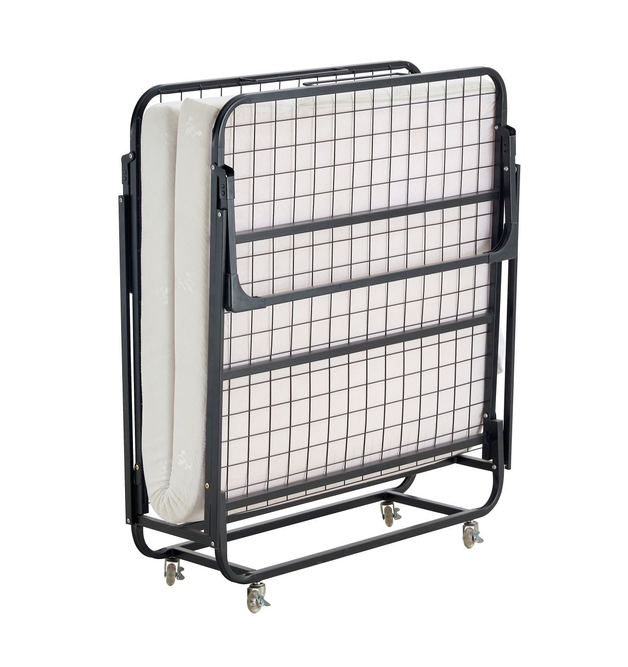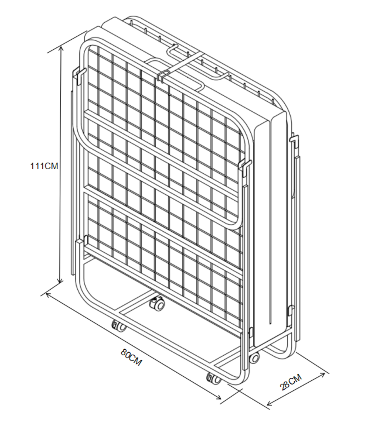 Facile à plier et à déplacer grâce à ses roulettes intégrées, il est parfait pour un couchage d’appoint rapide et confortable.