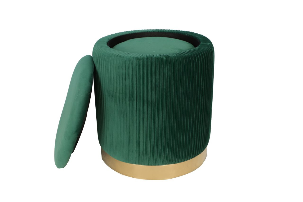 Les poufs gigognes Calipso allient esthétique et ingéniosité. En velours vert profond et base dorée brillante, ils s’emboîtent pour un gain de place élégant tout en offrant une assise confortable et un rangement discret.