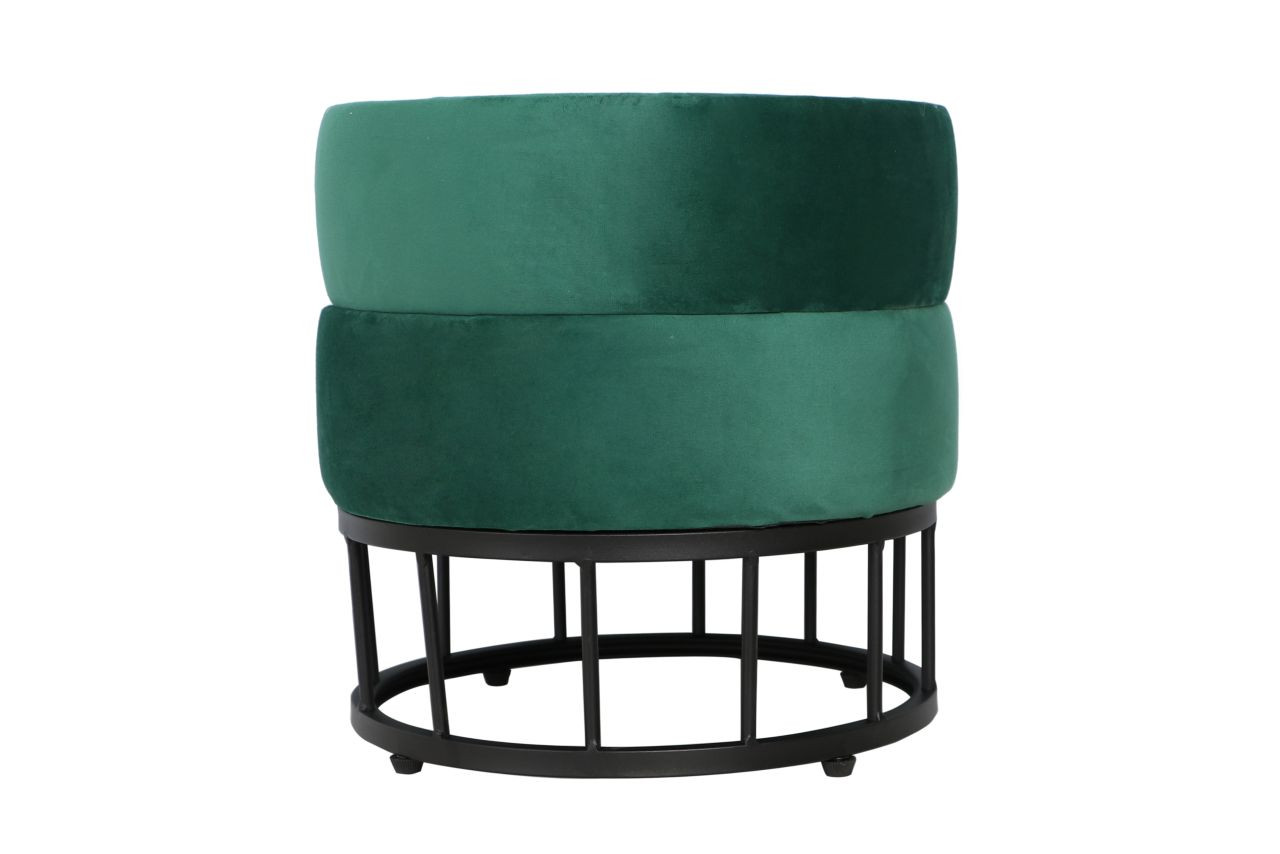Son revêtement en velours doux au toucher offre un confort agréable, tandis que sa teinte vert profond apporte une note sophistiquée à votre décoration intérieure. Le contraste avec la base en métal thermolaqué noir crée un style contemporain élégant.