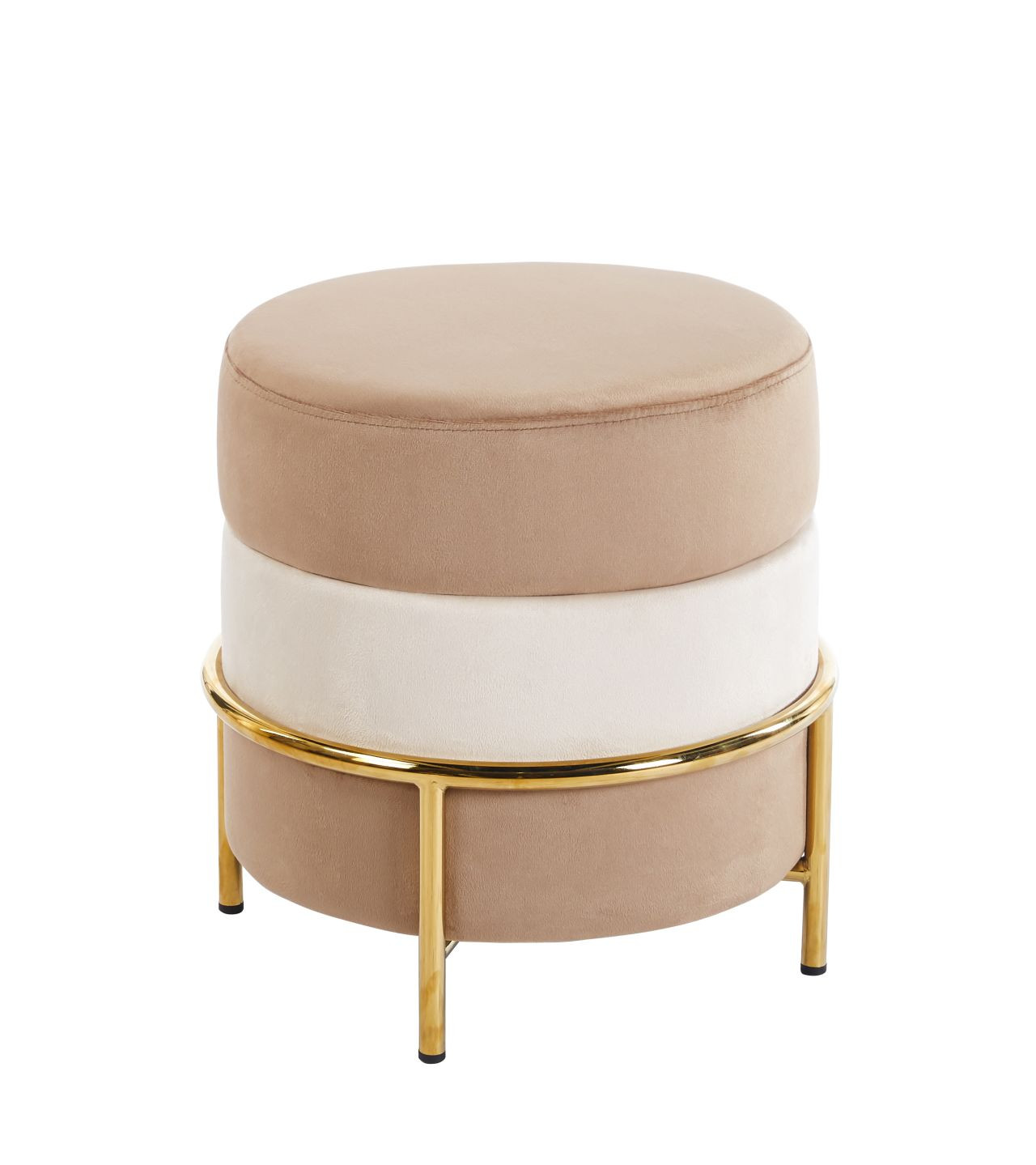 Le pouf Matilda Golddeco séduit par sa silhouette ronde, son velours soyeux et sa structure dorée éclatante. Son mariage de teintes cappuccino et beige apporte douceur et raffinement à tout intérieur.