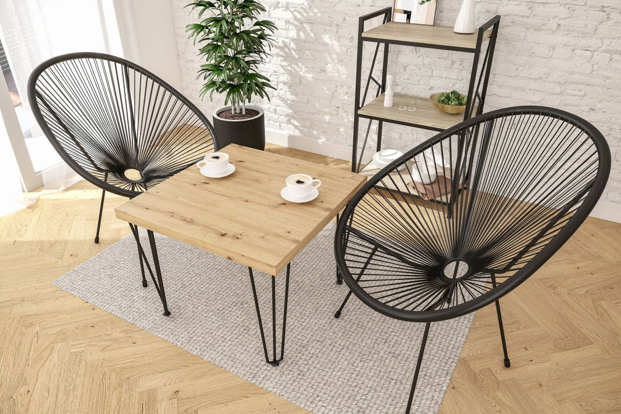 Alliance d’authenticité et de modernité, cette table basse carrée avec plateau aspect chêne artisanal et pieds noirs fins s’intègre dans tous les intérieurs au style naturel ou industriel.