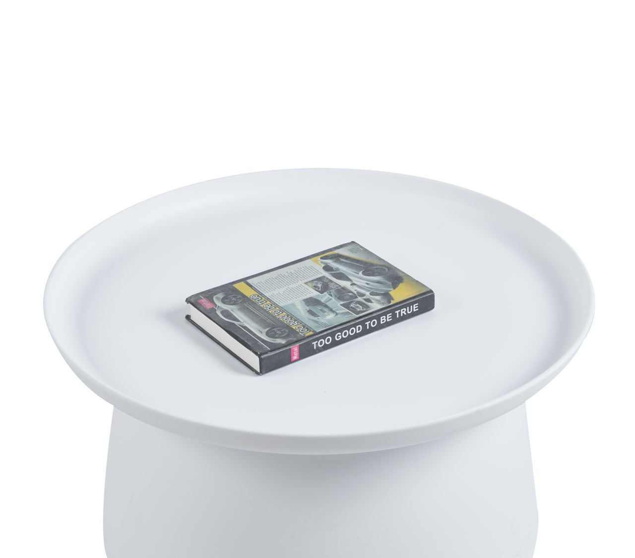 Table basse ronde 70 cm en plastique blanc PP. Style épuré, entretien facile, idéale pour déco contemporaine.