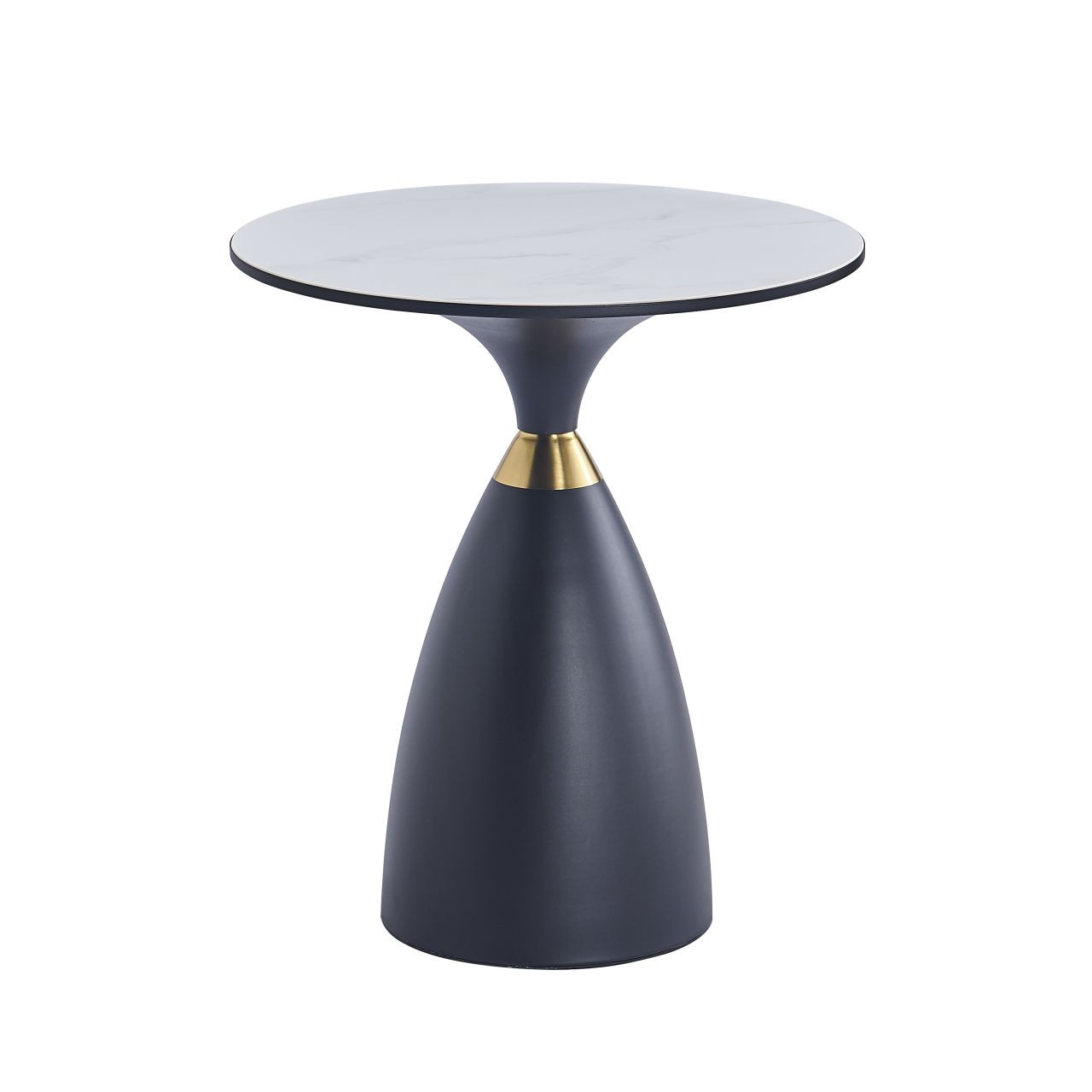 La table d’appoint ConeMarbre 50 cm signée Golddeco séduit par son équilibre parfait entre style et praticité. Avec son plateau en céramique aspect marbre blanc et son pied conique noir rehaussé d’un insert doré, elle apporte une touche chic à tout espace.