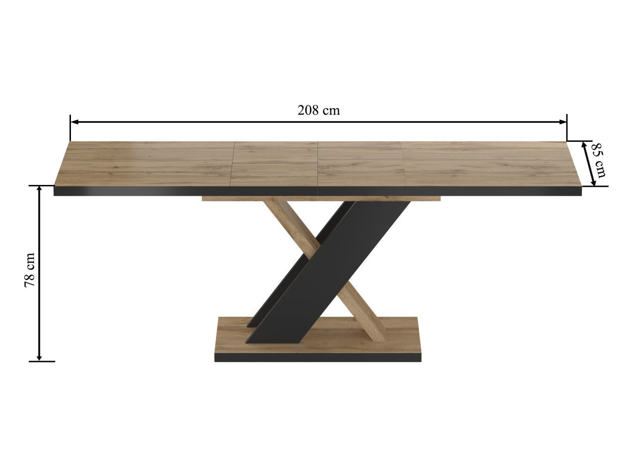 La Table Xenia Golddeco se distingue par son pied en forme de croix design, à la fois audacieux et équilibré. Le contraste harmonieux entre le chêne Wotan et le noir profond confère à cette table une présence forte, idéale pour un intérieur moderne et sophistiqué.