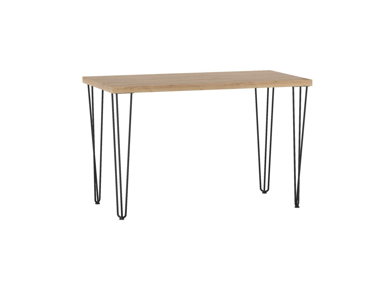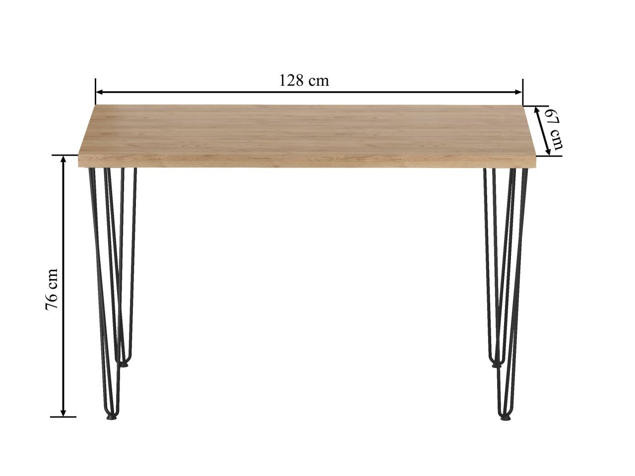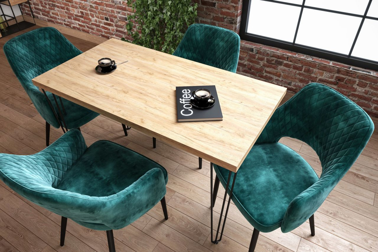 La table Ligna séduit par son allure légère et son design industriel raffiné. Son plateau aspect chêne doré repose sur quatre pieds filaires noirs au style rétro, offrant stabilité et élégance.
