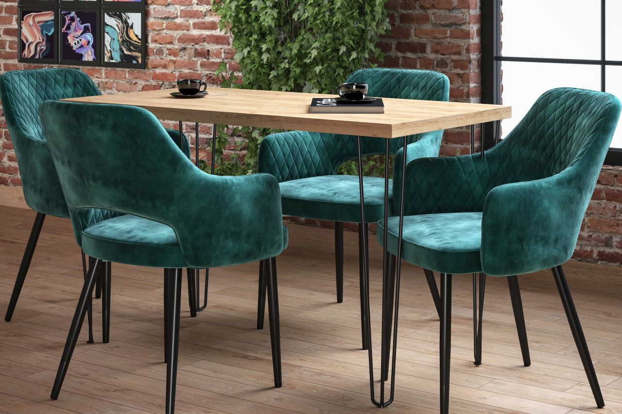 La Table Ligna – Pieds filaires noirs & plateau aspect chêne doré incarne l’élégance minimaliste dans toute sa splendeur. Ses pieds fins en acier thermolaqué noir apportent une touche de légèreté, tandis que le plateau effet bois doré crée une ambiance chaleureuse et conviviale.