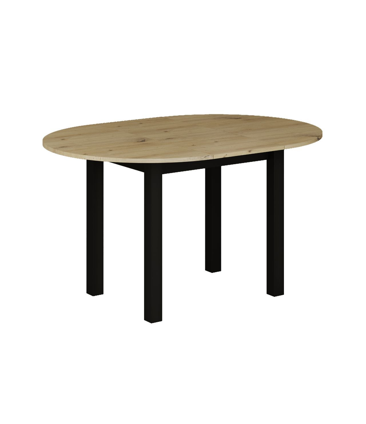 La Table Ovalis – Extensible aspect chêne artisanal & pieds noirs séduit par sa silhouette ovale harmonieuse et son contraste moderne entre bois clair et métal noir. Son plateau effet chêne artisanal apporte chaleur et authenticité à votre intérieur, tandis que ses pieds droits noirs structurent l’ensemble avec sobriété.
