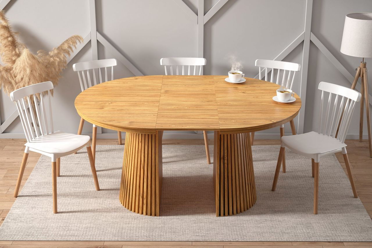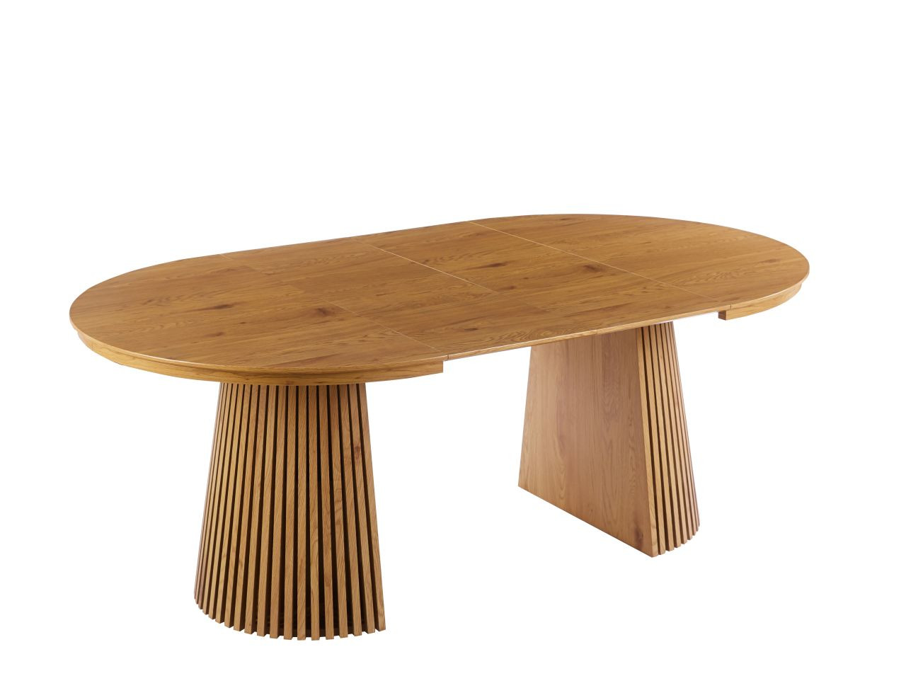 La table Spine Oak extensible sublime l’esprit du bois naturel grâce à son plateau aspect chêne et son piètement sculptural à lattes verticales. Moderne, chaleureuse et extensible jusqu’à 200 cm, elle combine élégance et praticité pour des repas conviviaux au design haut de gamme.