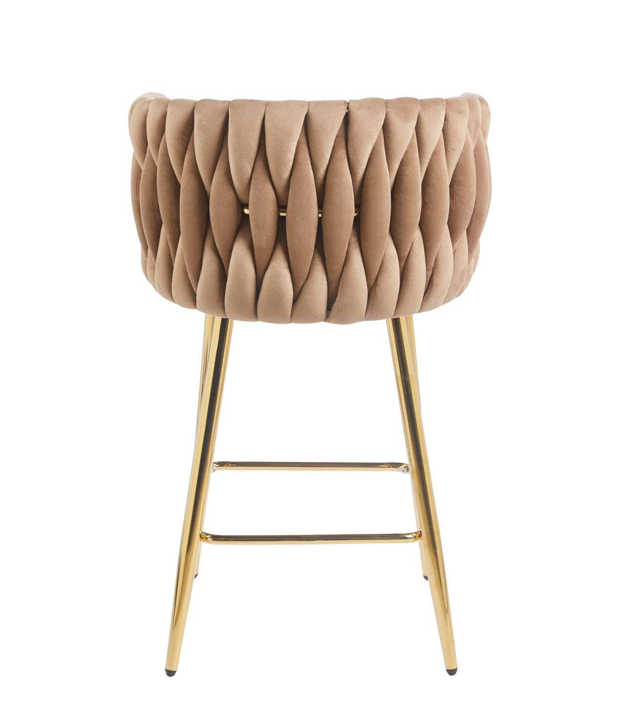 Tabouret de bar MAEVA fixe en velours cappuccino structure dorée brillante