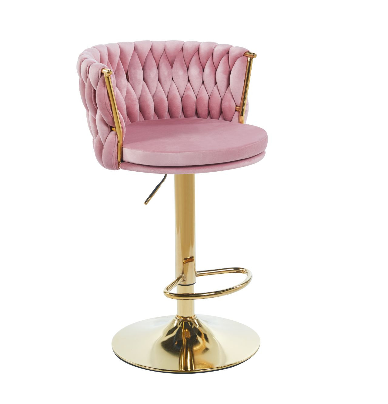 Le tabouret de bar MAEVA en velours rose et structure dorée brillante séduit par son charme raffiné et son allure chic. Véritable bijou décoratif, il allie douceur, confort et design pour sublimer votre espace intérieur.