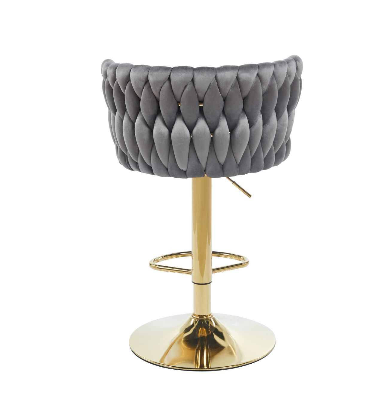 Le tabouret de bar MAEVA en velours gris et structure dorée brillante allie confort absolu et design haut de gamme. Son dossier arrondi au capitonnage luxueux offre un maintien optimal, tandis que son velours doux reflète l’élégance intemporelle de la collection Golddeco.