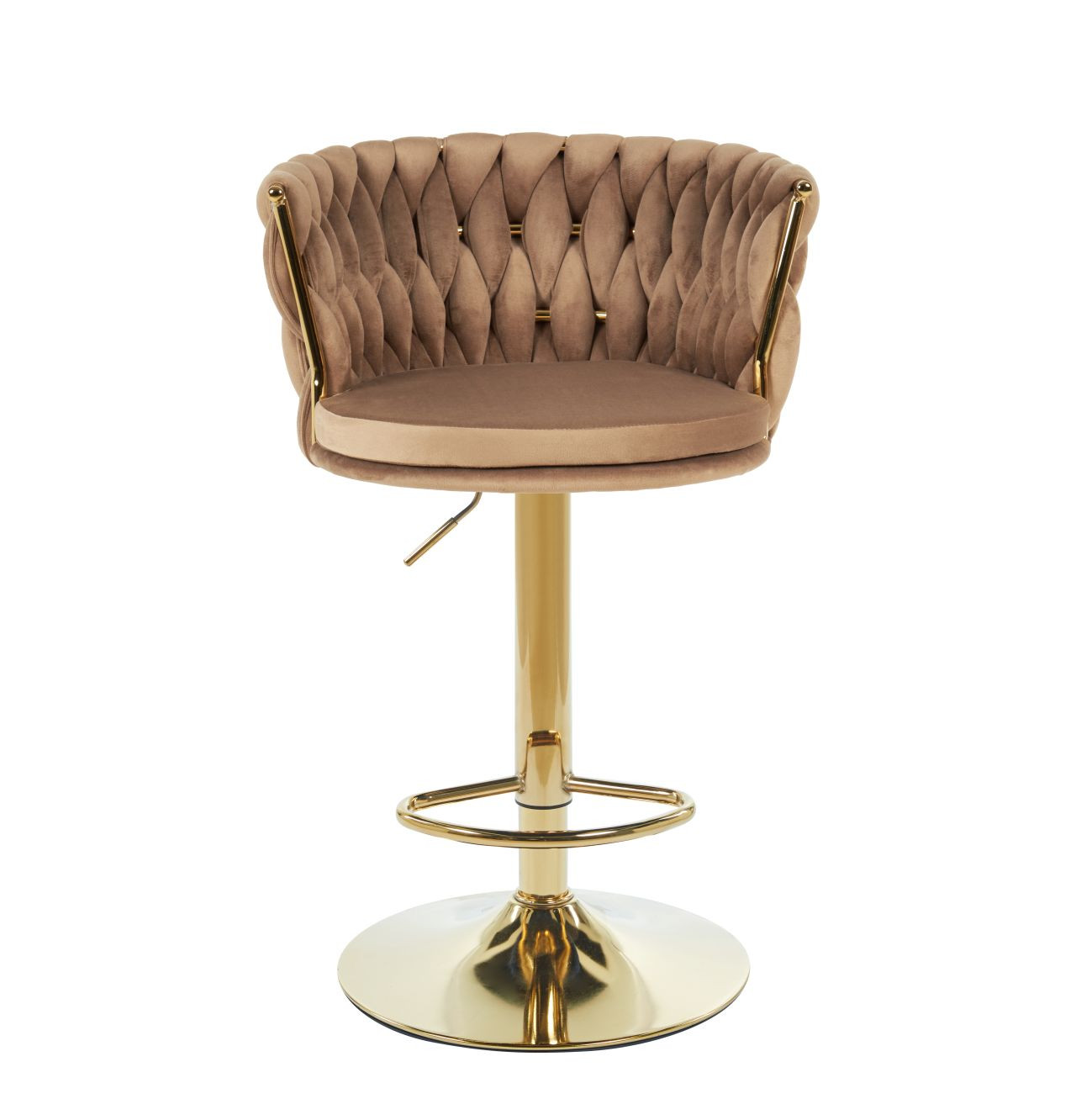 Tabouret de bar MAEVA en velours cappuccino structure dorée brillante