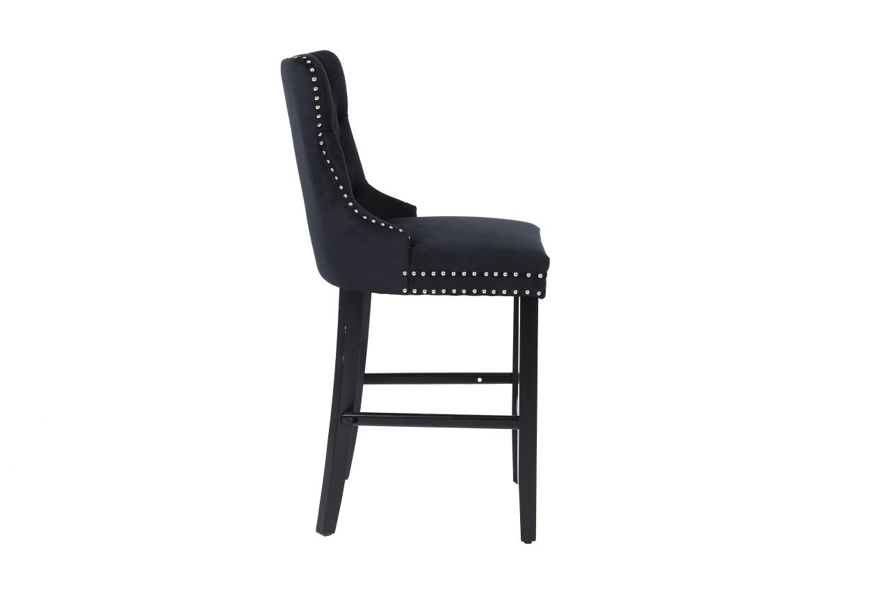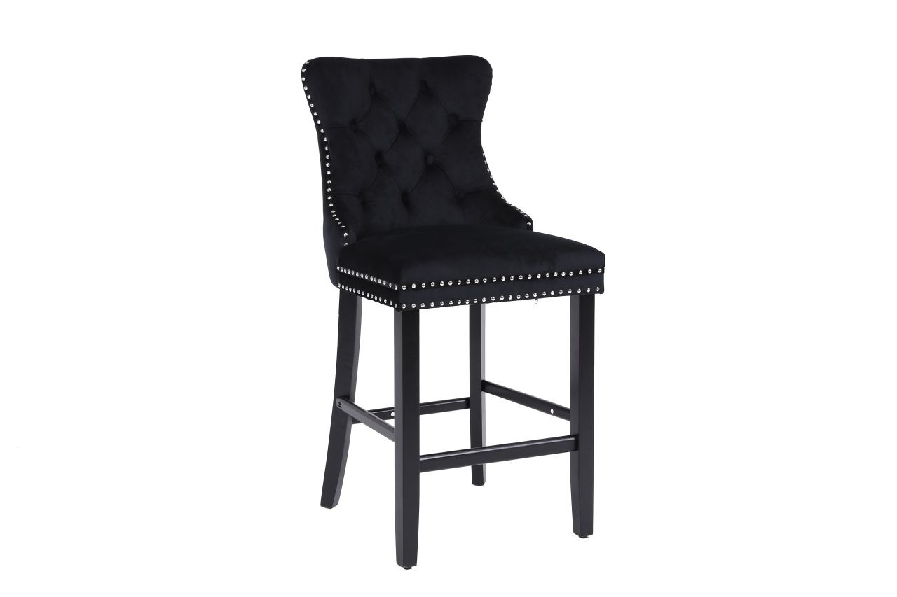 Le tabouret WINDSOR en velours noir incarne le raffinement absolu. Son dossier capitonné et ses clous chromés créent une allure prestigieuse, idéale pour un bar, un îlot central ou un intérieur de caractère.