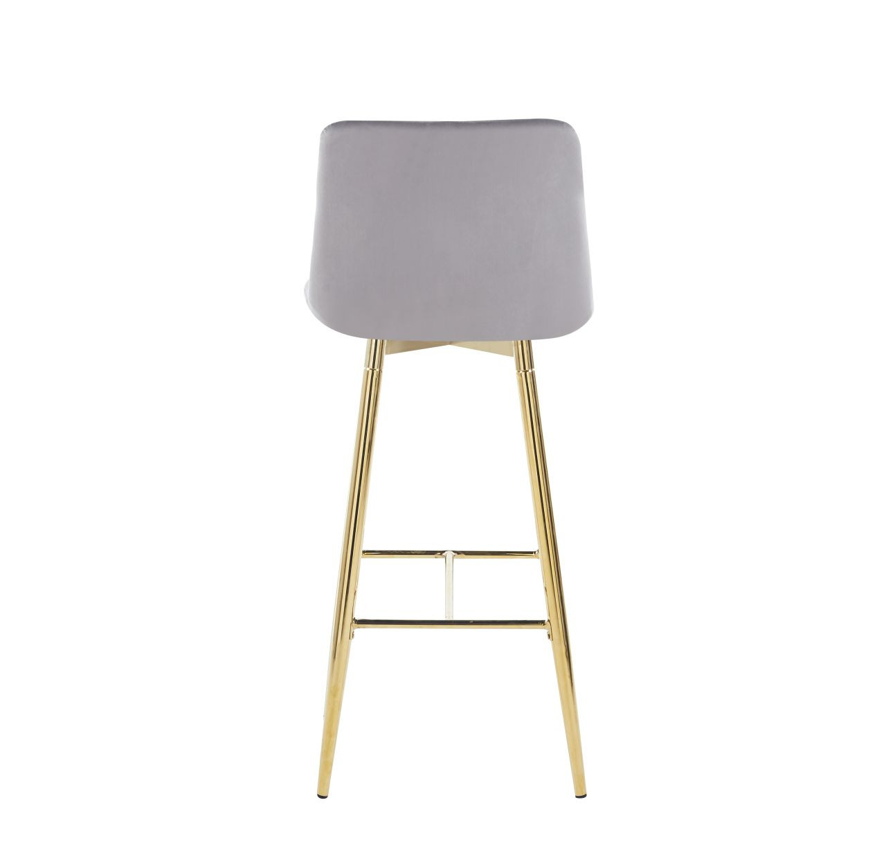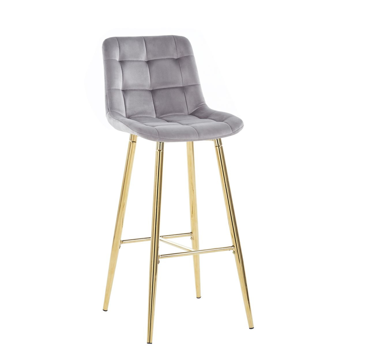 Tabouret de bar Victor en velours gris – Pieds dorés métal