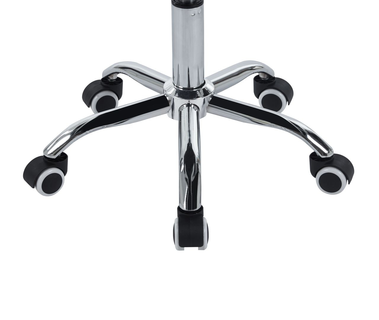 Le piètement en métal chromé assure une grande stabilité et un design raffiné, tandis que ses roulettes pivotantes permettent un déplacement fluide sur tout type de sol, sans bruit ni trace.