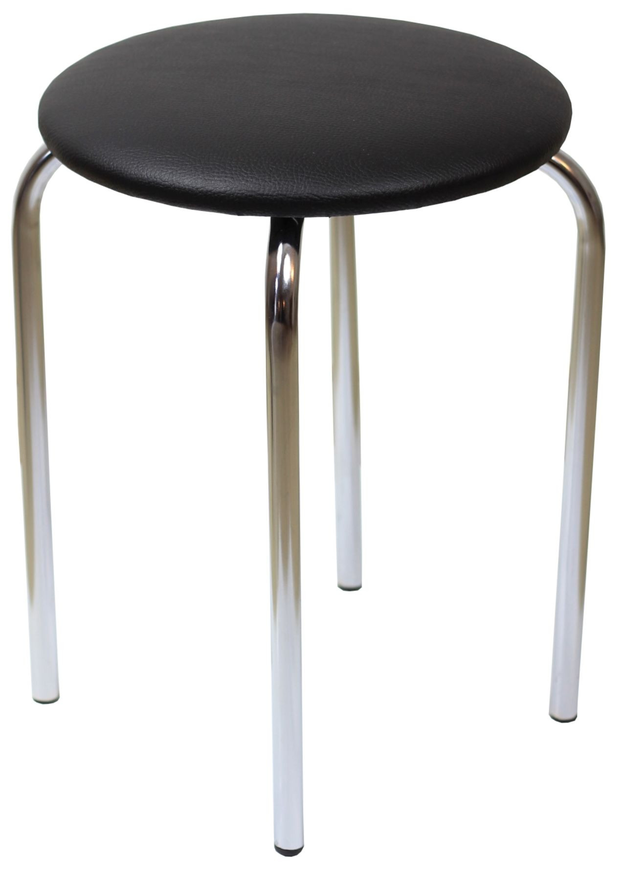 Tabouret empilable – Couleur noir en cuir écologique, structure chromée