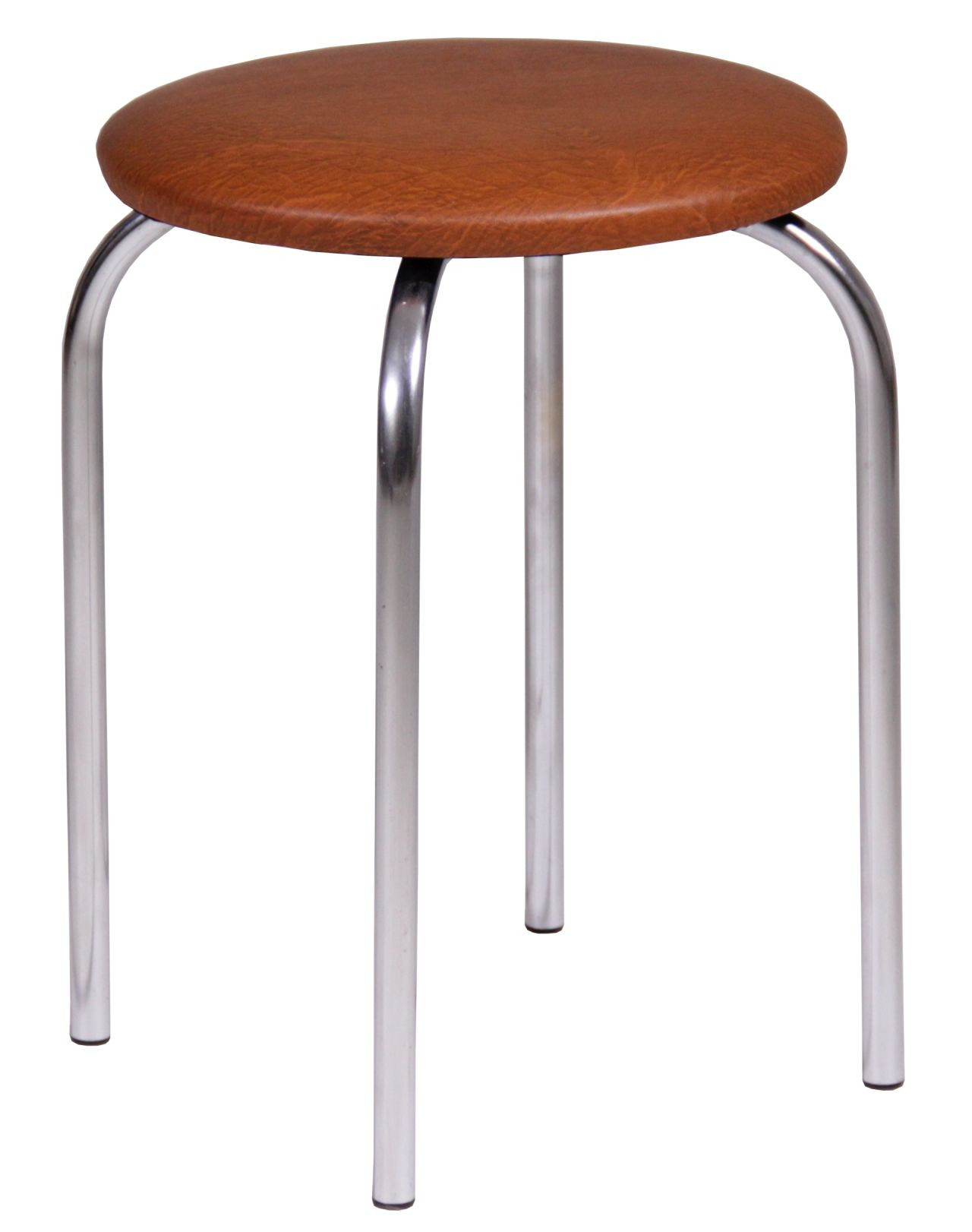 Tabouret empilable – Couleur marron clair en similicuir, structure chromée